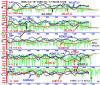 図7:地震発生の新たな概念 地殻の応力変化が起こすこれら地震の発生(星印)を、仮想粒子の出現とみなすと、地震発生の変化が残す痕跡(軌跡)は、仮想粒子が出現する度、その粒子の位置を直線で連結した軌跡とみなせる。 地震発生は仮想粒子の出現例えば、中国・四国・近畿地方の4度×5度のメッシュを対象領域として選択する。気象庁一元化カタログと気象庁カタログから、その小さな領域内に発生した地震で、深発地震を除き、マグニチュード(M)が、M≧Mc(Mc=3.5)で選択される地震のみ抽出する。そして、これら地震の震源(緯度−LAT、経度−LON、深さ−DEP)を、地震が発生した順に辿り、その領域(3次元空間)に痕跡(軌跡)を描く。図7に、その3次元空間を表示する。x軸を「LAT」、y軸を「LON」、z軸を「DEP」とすると、x-y平面が、地表面となり、z軸が、地殻の深さとなる。地殻内の星印が、発生した地震で、星印を連結した折れ線(矢印の連結)が、地震が描いた軌跡となる。星印の大小は、地震のMの大小を表す。地殻の応力変化が起こすこれら地震の発生(星印)を、仮想粒子の出現とみなすと、この軌跡は、仮想粒子が出現する度、その粒子の位置を直線で連結した軌跡となる。 図7に示した地震発生の痕跡は、丁度、液体中に浮遊している粒子が、ブラウン運動して描くジグザグした軌跡の様になる。浮遊粒子の運動軌跡は、所定の等間隔時間で、運動している粒子の位置を観測し、その位置を直線で連結して得る。地震発生の場合、震源時(地震の発生時刻)が、仮想粒子 (地震)を観測した時刻tとなるが、その観測時刻tと粒子の出現順番を示す整数値jとの関係は一意的なので、整数値jを観測時刻とする。図7の「x-y-z空間」に、その出現時刻の一例を、0、1、2、3、として、発生した地震(星印)の横に、付記してある。 その仮想粒子の観測値は、3次元空間の位置情報に、地殻の応力変化の情報とマグニチュードとを加える事ができる。マグニチュードは、MAGもしくはMと定義する。応力変化は、前述した様に、地震の発生時刻の差である発生間隔時間(INT)に出現すると仮定できるので、INTをその応力変化の観測値とする。これら観測値が、(LAT、LON、DEP、INT、MAG)からなる5つの震源要素cとなる。従って、仮想粒子の運動は、3次元から5次元へと拡張した観測空間で記述できる。観測空間の次元数は、更に、追加できる。例えば、地震の発生は断層の破壊運動なので、断層面の向き、傾き、すべり方向等の地震の破壊メカニズム要素も観測値に加える事ができる [13, 14]。この様に拡張した空間に描いた軌跡の各座標軸成分が、地震の各要素の時系列データd(c、j)となり、地震の発生順番を示す整数値jが、各時系列に共通な時間となる。整数値のjを時間とする事は、自然科学、工学等における情報や現象を時系列化する際、古くから頻繁に用いられている概念である。従って、時刻jで発生した地震が観測空間に描く軌跡は、時刻jで観測された仮想粒子が、その観測空間に描く運動軌跡と同等に取り扱う事ができるので、その粒子運動の位置、速度、加速度を用いて、地震の発生の変化を記述できる [14]。しかし、粒子が、ランダムでジグザグな運動をするので、その速度、加速度を求める微分操作は、ジグザグする箇所で、不可能となる。しかも、ランダム運動している粒子は、突如、決定論的な運動をしながら、大地震、巨大地震となる。即ち、突如出現する決定論的な大地震や巨大地震の予兆変化は、震源要素時系列のランダム変化に、完全に隠されている。従って、ランダム変化している時系列から、決定論的な変化を導出する、微分操作に代わる新たな数学的手段が必要となる。 ランダムな現象を取り扱う場合、不可能となる微分操作を避けるために、そのランダムな統計分布法則と微分法則を上手に組み合わせた確立微分方程式もあるが、その統計分法則に適合した物理、経済現象しか記述できない。物理現象では、確率過程と微分とを現象論的に結びつけた拡散の偏微分方程式[24]、ランジュバン方程式[24]、ランダムで微分不可能な現象の微分操作を、巧みに回避した伊藤の確立微分方程式[25]、金融工学では、伊藤の補題を発展させたブラック-ショールズ方程式[25]等がある。しかし、これら確立微分方程式は、予兆の性質から、予兆の運動方程式として使用できない。そこで、武田は、「物理的ウエーブレットによるリアルタイム信号処理手法」を開発し [14, 16 - 22]、その手法に証明も与えた [14, 16]。 物理的ウエーブレットは、対象とする信号(時系列)と相関を取り、変位、速度、加速度を検出する。速度、加速度を相関から検出する時、ウエーブレットの形状にマッチする要素を時系列から切り取り、切り取ったサンプルの平均(加算)とサンプル間の差分操作をする。加算操作は、サンプル内の小さな凸凹をスムースにするローパスフィルター機能を持ち、それらサンプル間の差分操作は、スムースにしたサンプル間の大きな凸凹を強調す